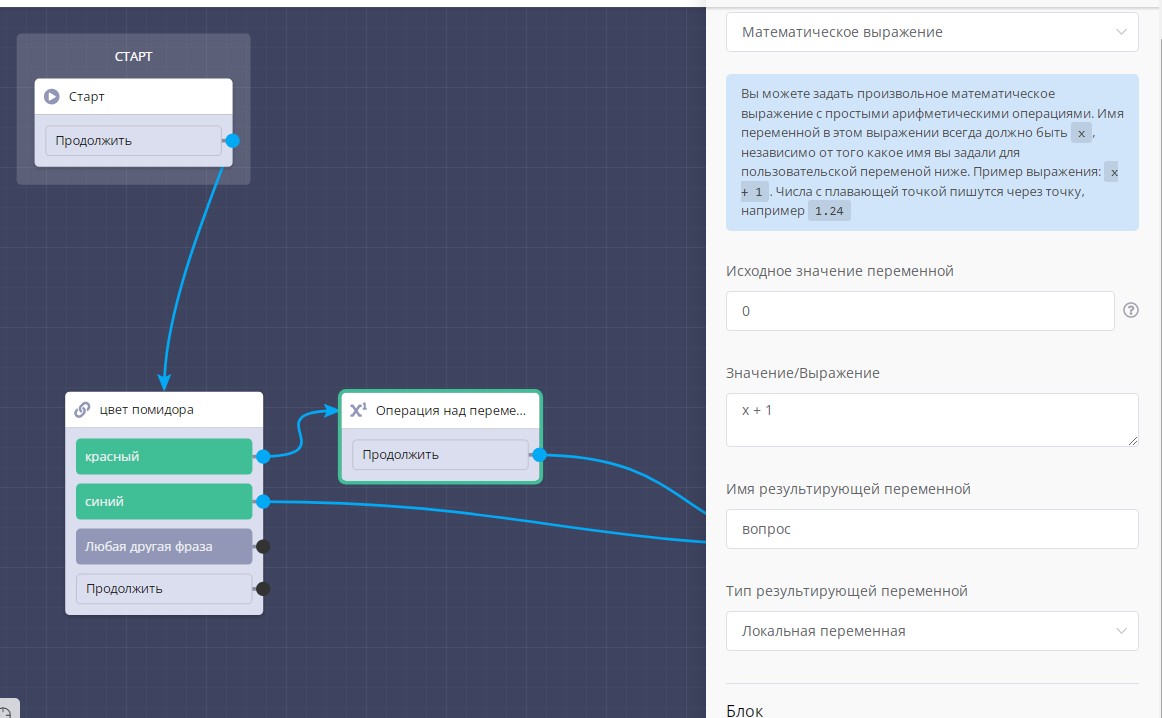 Чтобы случайно не зациклить сценарий и не потратить все ресурсы вычислительных мощностей наших серверов, наша платформа обрабатывает не более **4-х блоков** подряд стоящих друг за другом в цепочке. В будущем этот лимит может измениться.