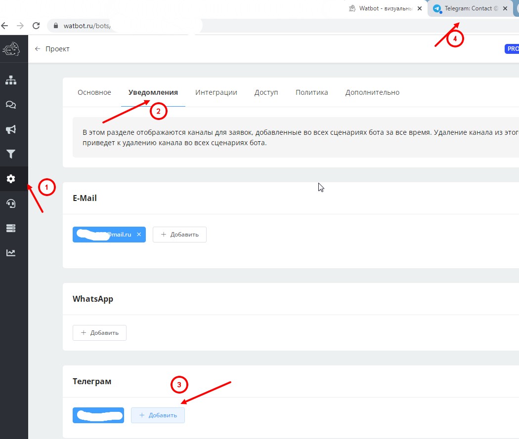 Ограничения по максимальному количеству каналов: email - 50 Telegram - 50 WhatsApp - 5